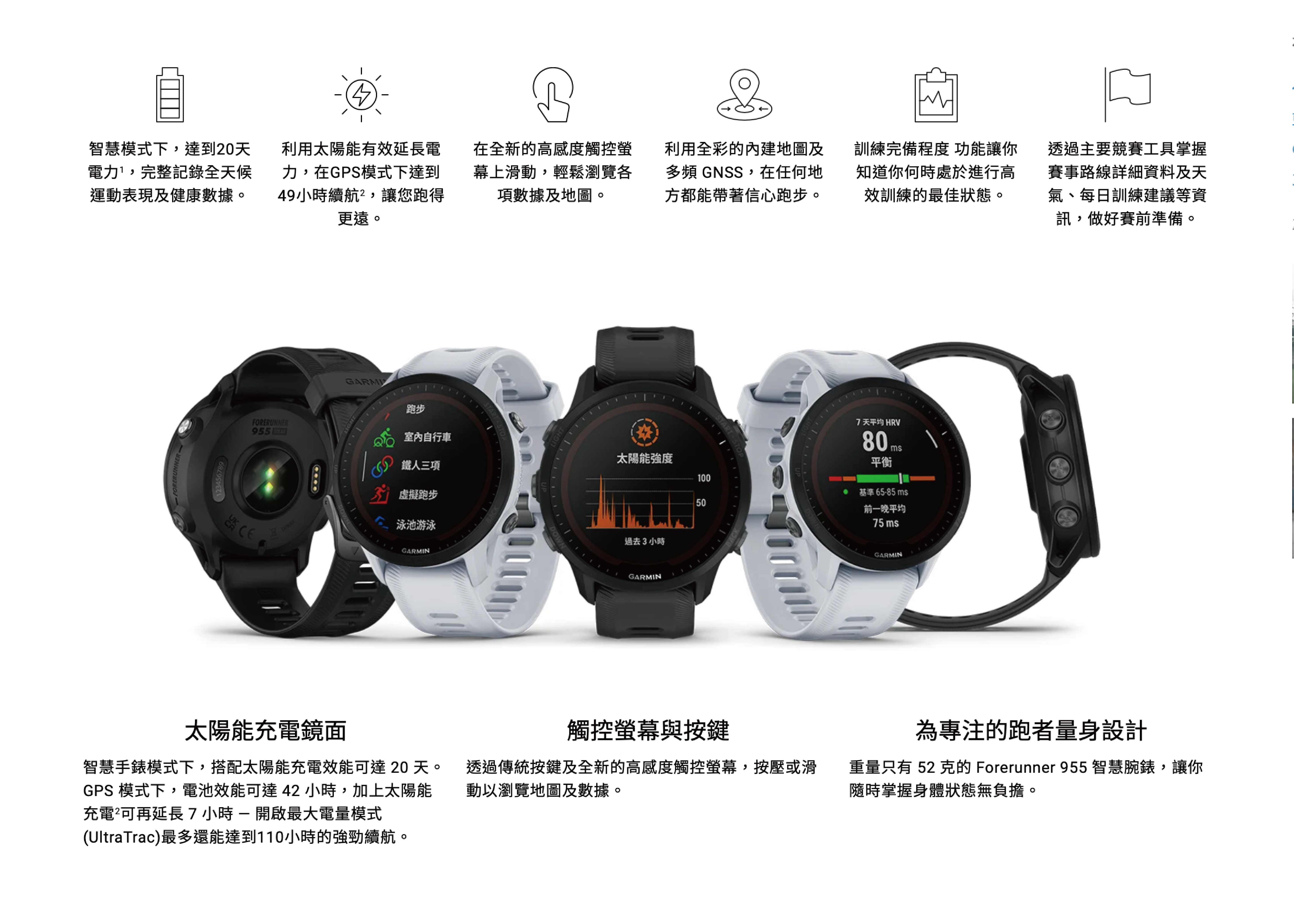 盡全力訓練、跑出最佳表現,並靠著延長電池效能的 Power Glass 太陽能充電鏡面,輾壓對手。