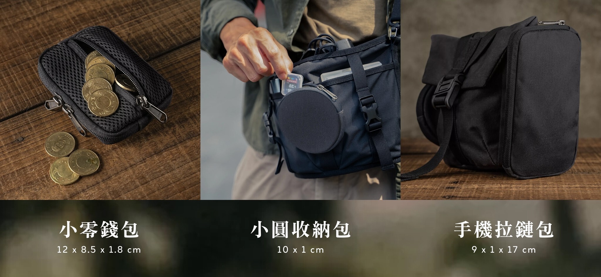 ✔️ 中層裝水壺外,兩側插扣可裝手機錢包等小物
